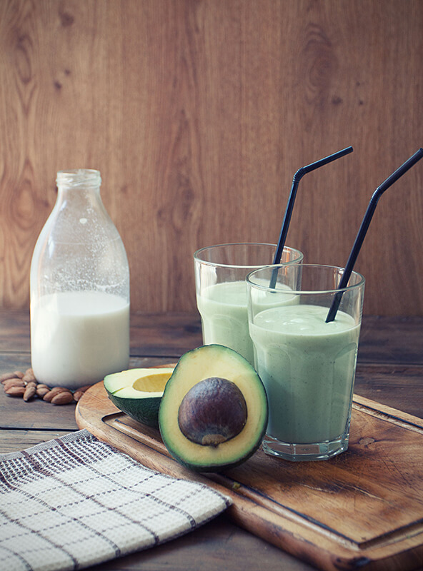 Awokado, mleko, banana, miód, kostki lodu i sok z cytryny razem dokładnie zmiksować.