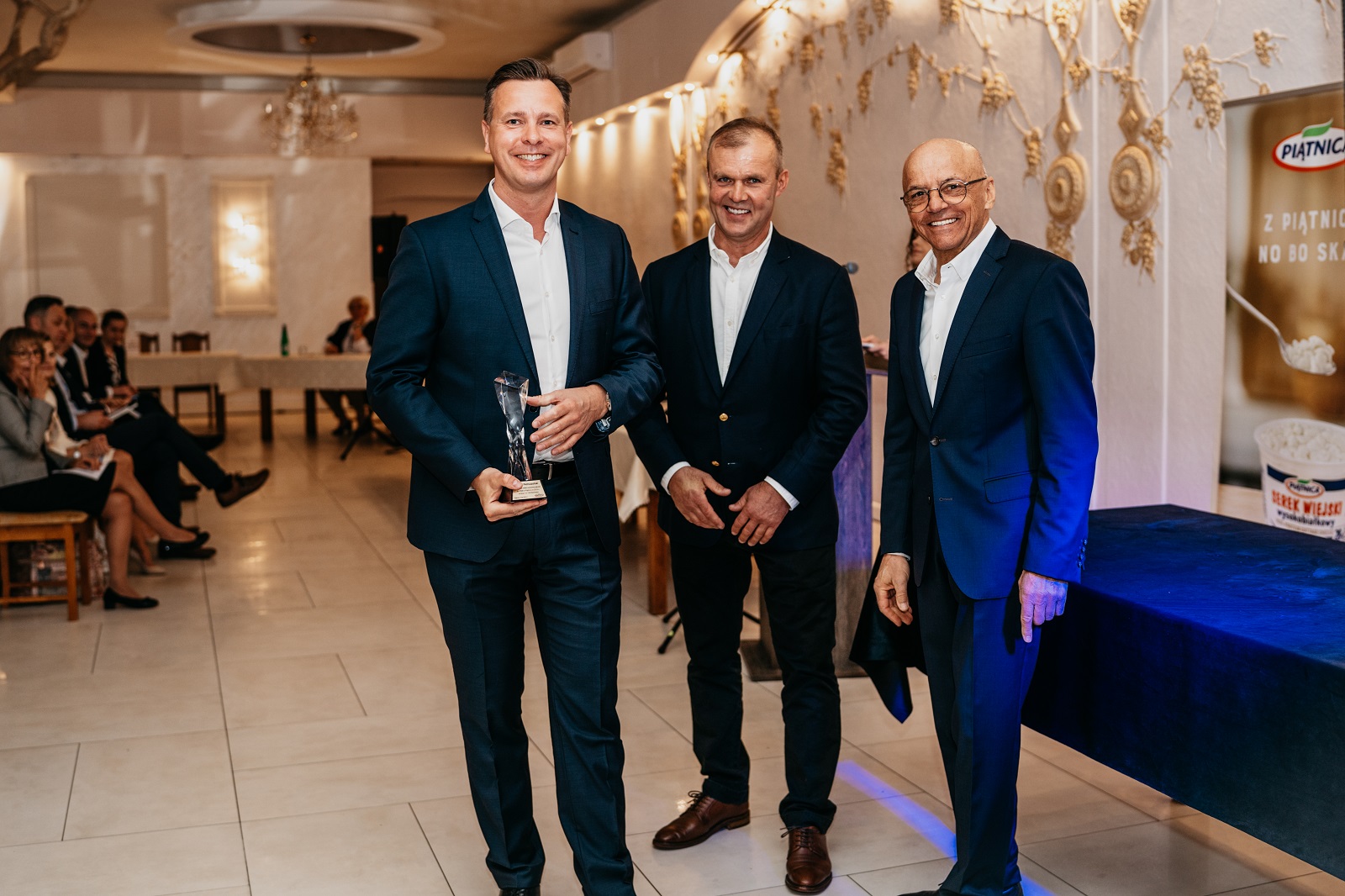 Na zdjęciu od lewej: lider rankingu OSM Piątnica Adam Pietruszyński z Piotrem Kadłubowskim, przewodniczącym Rady Nadzorczej OSM Piątnica oraz Prezesem OSM Piątnica Zbigniewem Kalinowskim