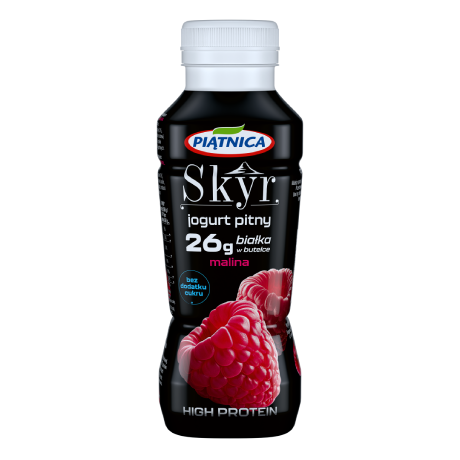 mleko pasteryzowane, przecier maliny 3%, substancje słodzące: ksylitol, glikozydy stewiolowe ze stewii, inulina, koncentrat ze słodkiego ziemniaka, rzodkwi i jabłka, naturalny aromat, żywe kultury bakterii jogurtowych.