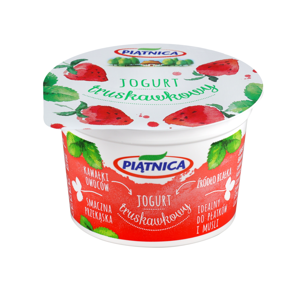 mleko pasteryzowane, cukier, truskawki 6 %, naturalny aromat, koncentrat z marchwi i soku z buraka czerwonego, zagęszczony sok cytrynowy, żywe kultury bakterii jogurtowych (Streptococcus thermophilus, Lactobacillus bulgaricus).