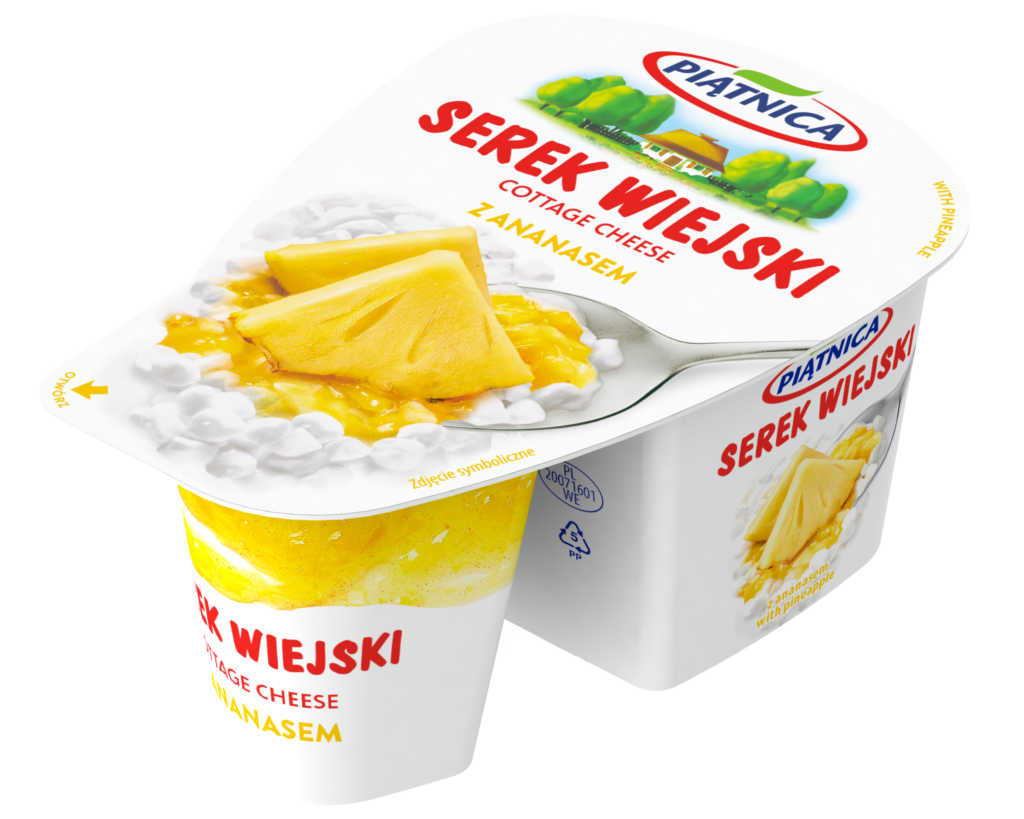 twaróg ziarnisty, śmietanka pasteryzowana, wsad ananasowy (cukier, ananas 7 % w serku, zagęszczony sok z cytryny, aromat, barwniki: kurkumina, ekstrakt z papryki), sól.