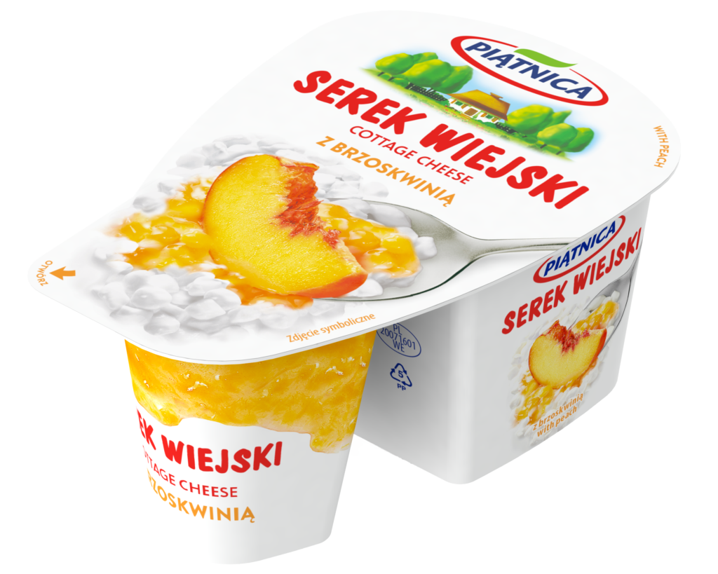 twaróg ziarnisty, śmietanka pasteryzowana, wsad brzoskwiniowy (cukier, brzoskwinia 8 % w serku, zagęszczony sok z cytryny, naturalny aromat, barwnik: ekstrakt z papryki), sól.