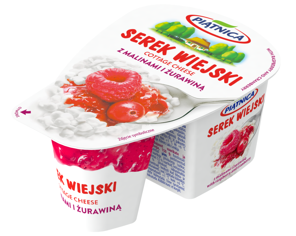 twaróg ziarnisty, śmietanka pasteryzowana, wsad malina z żurawiną (cukier, malina 3,5 % w serku, żurawina 3,5 % w serku, zagęszczony sok z cytryny, naturalne aromaty), sól.