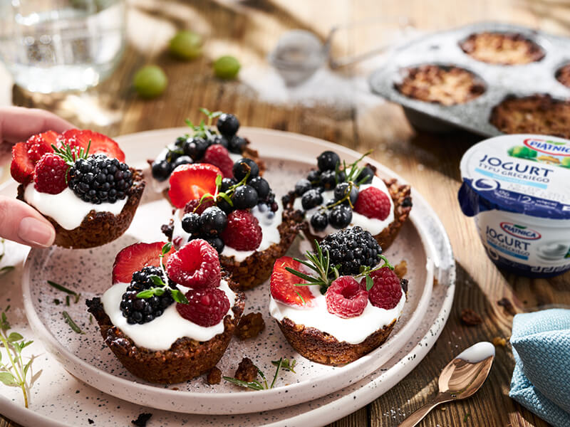 Podawać z łyżką jogurtu PIĄTNICA i posypką z ulubionych owoców.