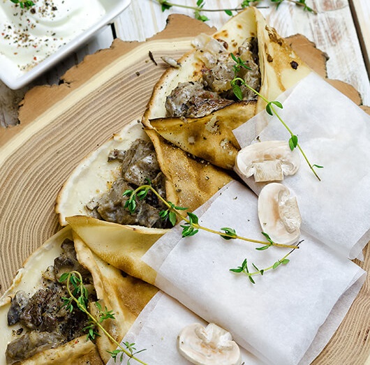 Naleśniki z grzybami, żółtym serem i tymiankiem