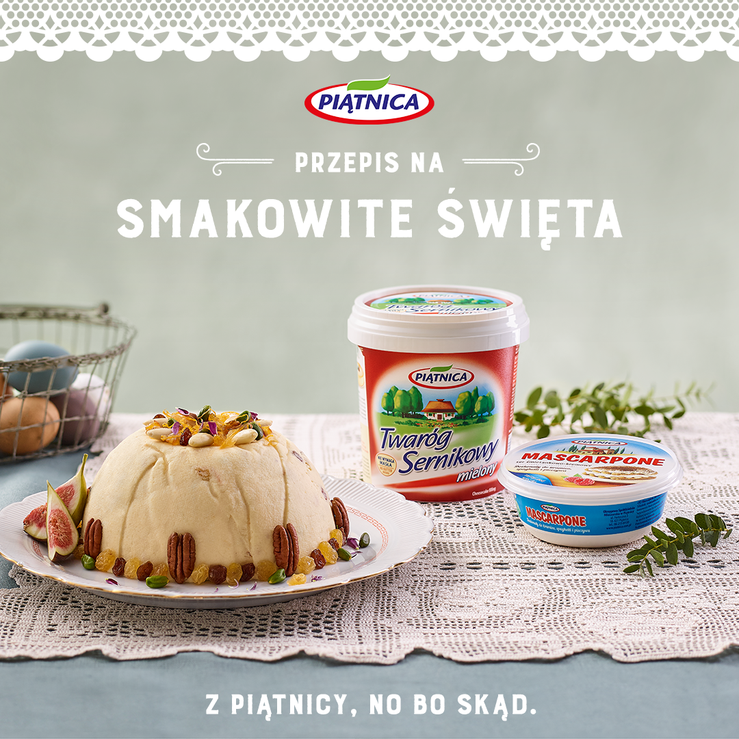 Tradycyjna wielkanocna babka, mazurek, sernik czy pascha to najpopularniejsze wielkanocne ciasta, które warto upiec, wykorzystując najlepsze produkty. Twaróg sernikowy OSM Piątnica, Mascarpone oraz piątnickie śmietany to składniki, bez których trudno wyobrazić sobie przygotowania do świąt Wielkiej Nocy. Dlatego marka Piątnica w komunikacji świątecznej stawia głównie na te produkty. Ich naturalny skład oraz wyjątkowy smak gwarantują doskonałe wypieki i kulinarny sukces.