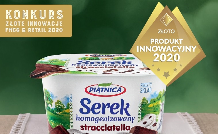 Serek homogenizowany stracciatella OSM Piątnica zajął 1. miejsce w kategorii „Nabiał – odpowiedź na potrzeby konsumentów” w konkursie „Złote Innowacje FMCG & Retail 2020”.